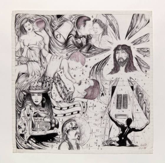 Series of images with father and child at the center; other images of a man in front of doorway. Christ with crown of thorns and other images of family life, marriage, intimacy, etc.